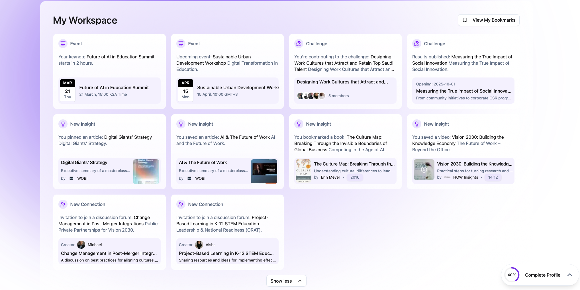 The House of Wisdom brings these elements together in a structured environment designed to support complex organisational work.